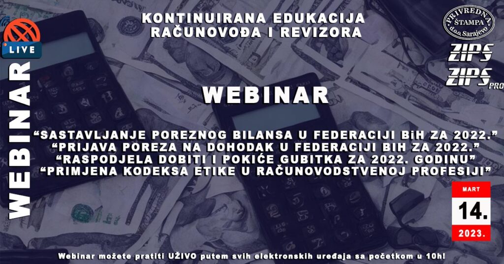 ONLINE PRIJAVA Please enable JavaScript in your browser to complete this form.ORGANIZACIJAPuni naziv institucije ili kompanijeAdresa *Adresa sjedišta organizacijeID brojPDV brojTelefon *Email *Odabir vrste kotizacije *BESPLATNO za korisnike ZIPSpro paketa godišnje edukacijeBESPLATNO pretplatnici na časopis ZIPS (pod uslovom da su izmirili obaveze po osnovu pretplate)Ostali učesnici : 90,00 KM (sa uključenim PDV-om)Odaberite samo jednu opcijuUčesnik 1 *Ime i prezimeBroj licence - OR - CR - CRTIzdan od strane Saveza računovođa, revizora i financijskih djelatnika FBiH. Ako nemate licencu ovo polje ostavite prazno.EmailUčesnik 2Ime i prezimeBroj licence - OR - CR - CRT Izdan od strane Saveza računovođa, revizora i financijskih djelatnika FBiH. Ako nemate licencu ovo polje ostavite prazno.EmailUčesnik 3Ime i prezimeBroj licence - OR - CR - CRT Izdan od strane Saveza računovođa, revizora i financijskih djelatnika FBiH. Ako nemate licencu ovo polje ostavite prazno.EmailNapomenaPošalji