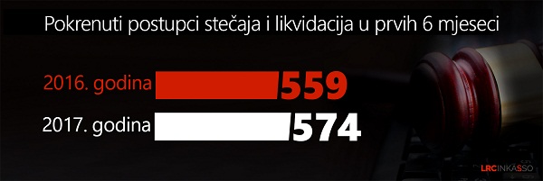 Prema riječima Sabine Mašović, rukovodioca pravne službe „LRC  INKASSO“, u  prvih šest mjeseci  2017. godine  otvoren  je 121 stečajni postupak  i 453 likvidacije.